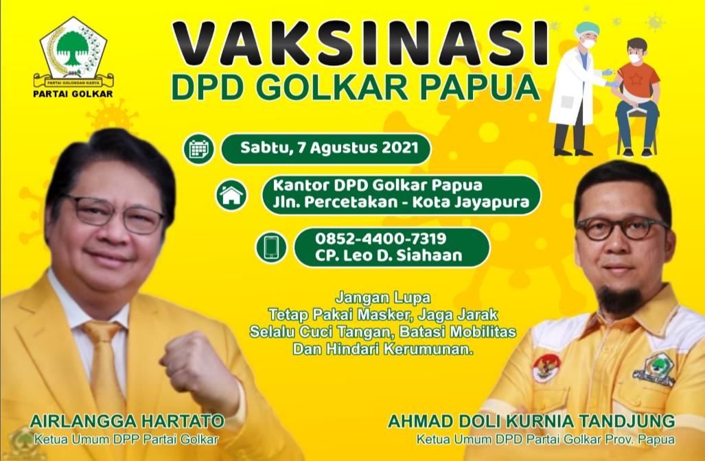 Kabargolkar.com - Dewan Pimpinan Daerah (DPD) Golkar Papua akan menggelar Vaksinasi, Sabtu (7/8/2021) di kantor kantor ...
