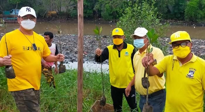 Kabargolkar.com - Pengurus DPD II Partai Golkar Kota Batam menanam pohon mangrove di Sungai Bengkong Laut, ...
