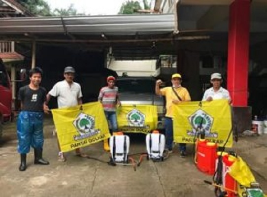 kabargolkar.com, SIDRAP - Golkar Sidrap ikut andil mencegah penyebaran virus Covid-19. Caranya, melakukan penyemprotan disinfektan dan membagikan masker ke warga, Ahad (5/4/2020).