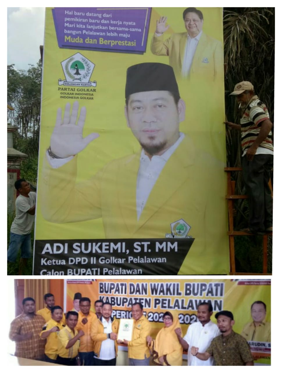 Dijelaskan HM Harris yang juga Bupati Pelalawan bahwa DPD II Golkar Kabupaten Pelalawan sebelumnya telah mengajukan beberapa nama ke DPD I Golkar untuk selanjutnya diusulkan ke DPP Golkar. Dari beberapa nama ini, DPP mengeluarkan rekom untuk nama Adi Sukemi ST MM sebagai kandidat calon bupati.