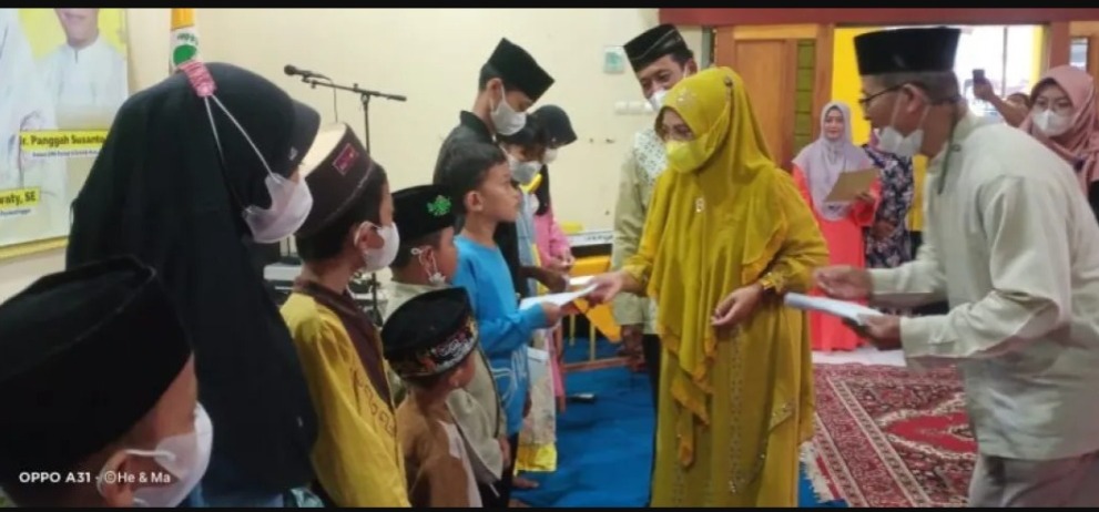 Kabargolkar.com - PAC Golkar Pancoranmas (Panmas) memberikan santunan kepada 63 yatim, piatu dan dhuafa menjelang Hari Raya Idul Fitri beberapa waktu lalu, di kediaman Ketua PAC Pancoranmas, Karman Hermanto, di Kampung Pitara, Kecamatan Pancoranmas.