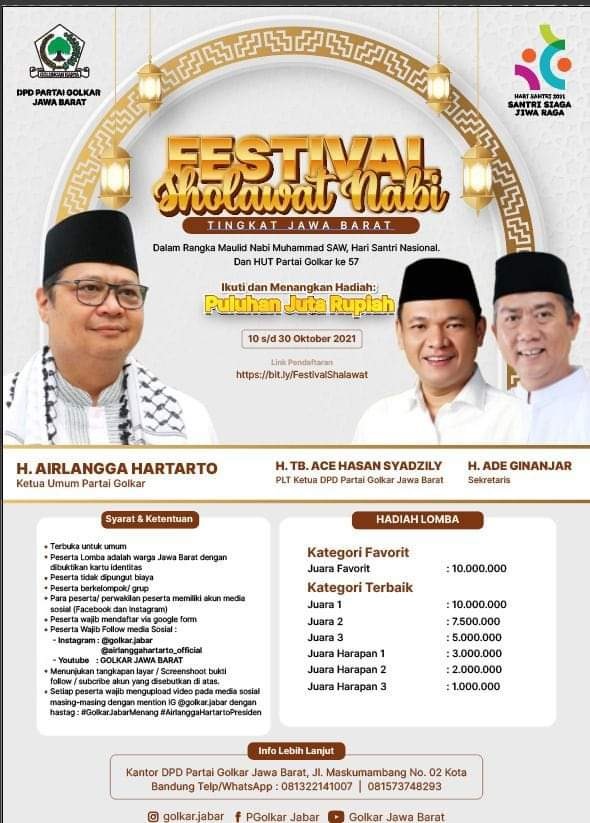 DPD Golkar Jabar menggelar "Festival Sholawat Nabi" tingkat Provinsi Jawa Barat. Festival ini dapat diikuti oleh masyarakat umum. Kegiatan ini berlangsung dari tanggal 10 hingga 30 Oktober 2021 dan berhadiah total puluhan juta rupiah.