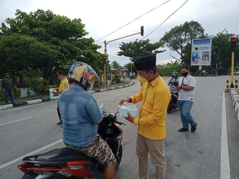 "Kemudian beberapa waktu lalu program Golkar Berbagi menyalurkan nasi kotak ke santri-santri di pondok pesantren dan selain itu Golkar Bengkalis sudah menyalurkan 600 kotak nasi melalui Golkar berbagi yang sudah menyasar buruh, pedagang kecil, tukang parkir, tukang bangunan, ojek, becak dan nelayan "Jelas Syahrial".