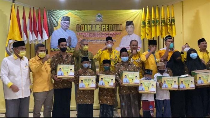 Kabargolkar.com - Kader muda Partai Golkar Lampung Tengah (Lamteng), Sawabi Ichsan, memberikan bingkisan kepada sejumlah anak yatim di Kecamatan Seputihagung dan Terbanggibesar, Rabu (27-4-2022).