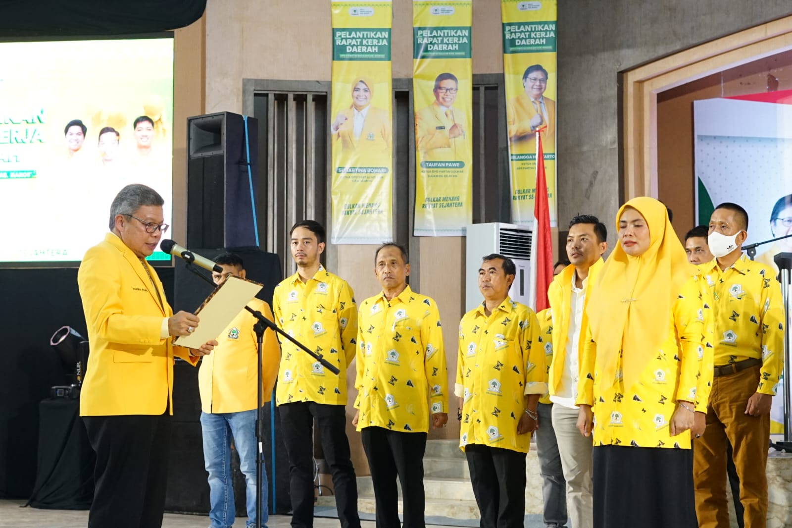 Kabargolkar.com - Ketua Golkar Sulsel, Taufan Pawe (TP) melantik Ketua Golkar Maros Suhartina Bohari dan pengurusnya di Gedung Serba Guna Maros, Senin, 12 Desember 2022.