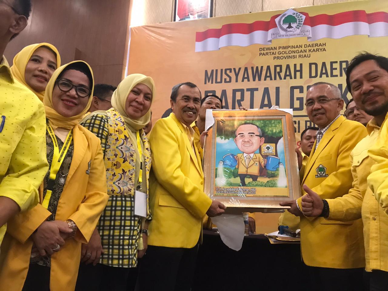 “Pendukung dan pencinta di Riau masih cinta dengan Partai Golkar, mulai saat ini kita bekerja dengan kinerja dan bukti nyata untuk kebutuhan rakyat,” terangnya.