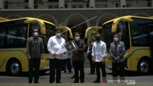 Kabargolkar.com - Menteri Koordinator Bidang Perekonomian Airlangga Hartarto memberikan dua unit bus listrik dan dua microbus untuk almamaternya Universitas Gadjah Mada (UGM).