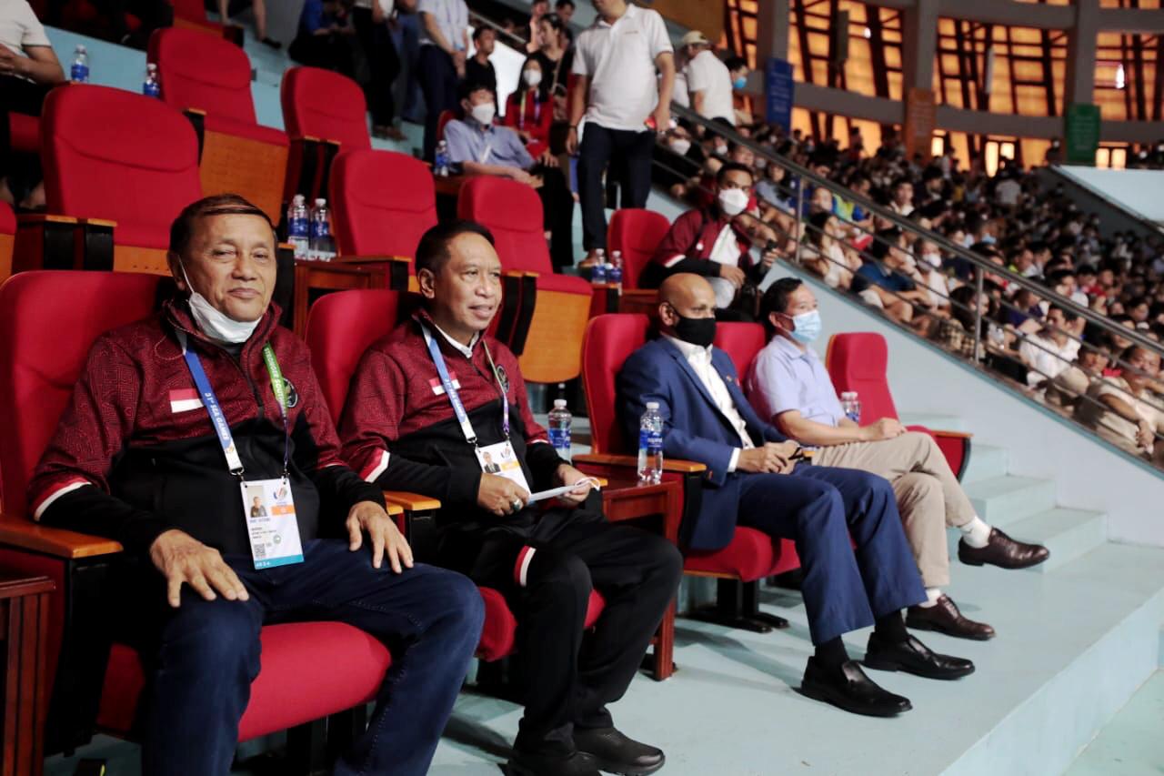 Acara ini juga turut dihadiri para menteri kabinet, Ketua Komite Olimpiade Indonesia (NOC Indonesia), Raja Sapta Oktohari, Ketua Umum Komite Olahraga Nasional Indonesia (KONI) Pusat, Marciano Norman, Ketua Chef de Mission (CdM) Kontingen Indonesia SEA Games 2021 Vietnam Ferry J Kono serta para atlet tim SEA Games 2021.