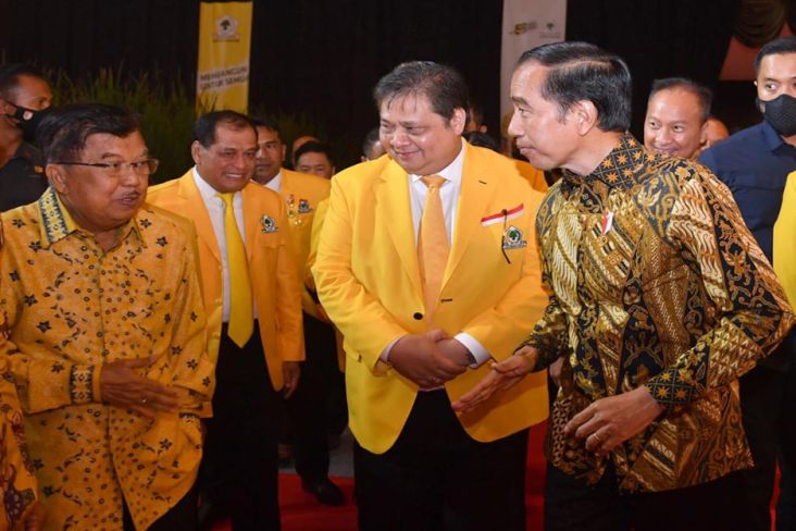 "Oleh sebab itu betul-betul pemimpin ke depan harus kita pilih yang memiliki jam terbang yang tinggi. Salah satu yang saya lihat Bapak Airlangga Hartarto," kata Jokowi diikuti teriakan dan tepuk tangan kader Golkar