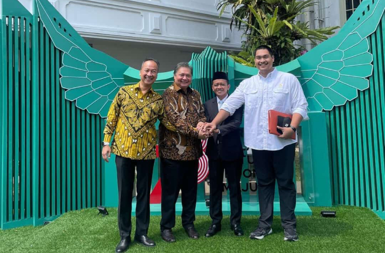 "Pada pertemuan lalu saya kasih electric bicycle. Hari ini bunga spesial merah-kuning. Ini bunga politik," kata Airlangga sambil tertawa kecil, Kamis (27/7/2023).
