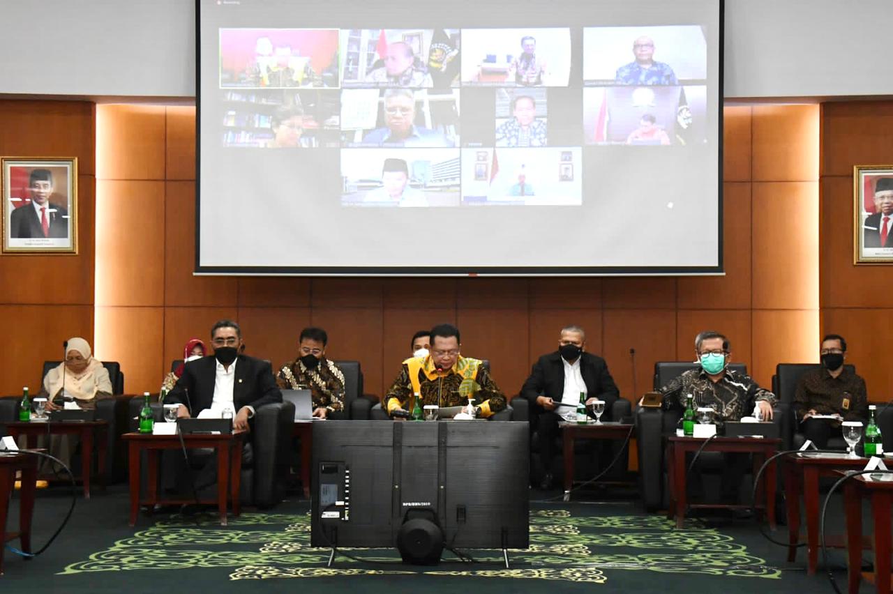 Pimpinan MPR RI juga menyampaikan kepada Presiden, sesuai tugas konstitusionalnya, MPR RI saat ini tengah melakukan pengkajian sistem ketatanegaraan. Meskipun telah dilakukan empat kali amandemen, ternyata masih banyak persoalan besar yang belum terakomodir dalam konstitusi. Misalnya, jika menjelang Pemilu terjadi sesuatu di luar dugaan seperti bencana alam yang dahsyat, peperangan besar, pandemi penyakit yang belum diketahui cara menanganinya, krisis ekonomi dan keuangan yang mengancam stabilitas dan kemanan negara, maka lembaga negara manakah yang berwenang menunda Pemilu?